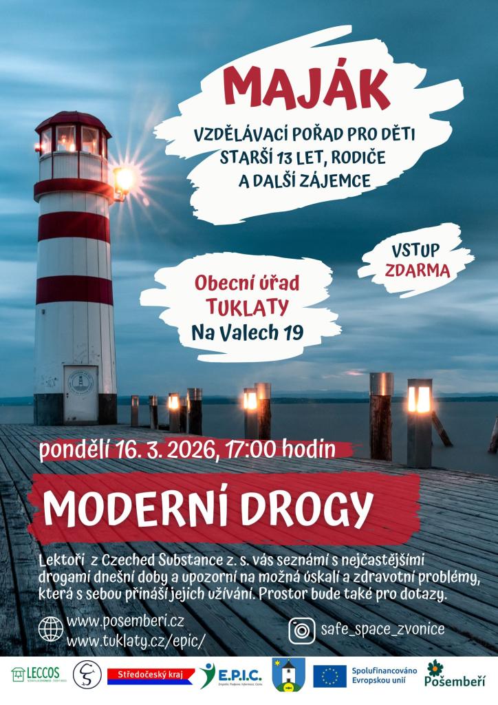 Lektoři z organizace Czeched Substance z. s. představí nejčastější návykové látky dnešní doby, upozorní na jejich rizika a možné zdravotní i sociální dopady. Nabídnou také prostor pro dotazy i otevřenou diskuzi. Setkání se uskuteční v pondělí 16. března 2026 od 17:00 hodin v prostorách Obecního úřadu Tuklaty, Na Valech 19. Vstup na akci je zdarma.
