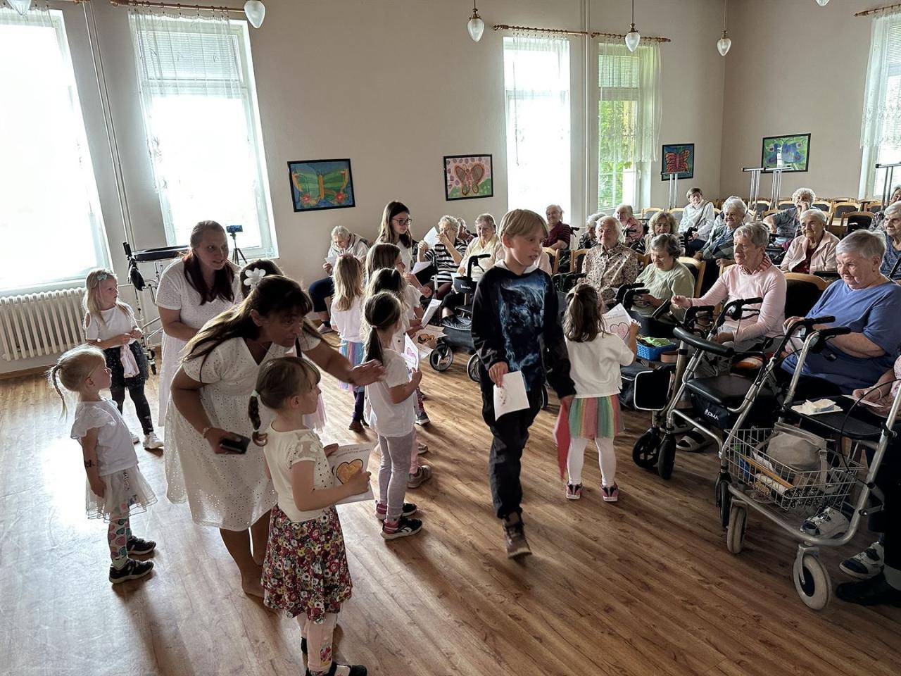 Cílem akce bylo zpestřit každodenní život klientů domova, podpořit mezigenerační setkávání a nabídnout dětem příležitost k rozvoji jejich dovedností. Děti pod vedením lektorek z centra předvedly pestrý program plný písniček, tance a recitace, který seniory velmi potěšil. Atmosféra byla srdečná a dojemná, což bylo patrné z úsměvů i dojatých pohledů přítomných. Pro děti to byla cenná zkušenost, která jim pomohla posílit sebevědomí i empatii vůči starší generaci.