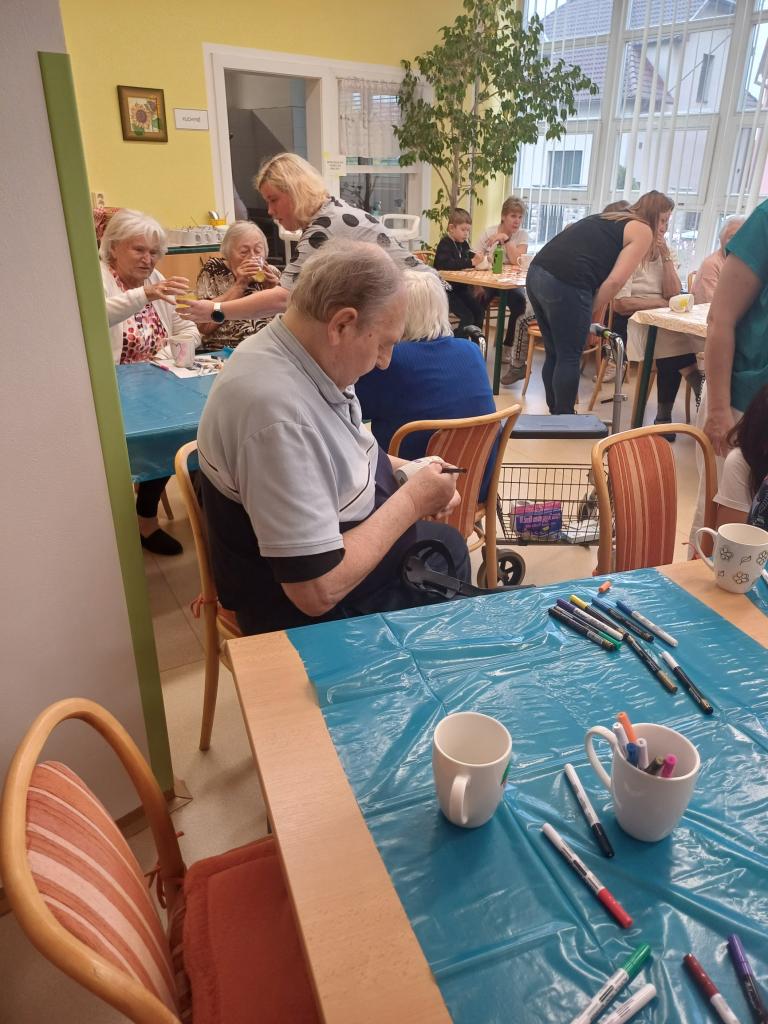 Výtvarná dílna se konala v jídelně domova, kde byly pro účastníky připraveny veškeré pomůcky zdarma. Společné malování hrnečků se stalo nejen tvůrčím vyžitím, ale také prostředkem k posílení psychického zdraví a sociálních vazeb seniorů. Podobné akce pomáhají předcházet pocitům izolace a osamělosti, které mohou seniory v domovech často trápit. Jsme rádi, že jsme mohli dílnu s pomocí projektu s názvem Region Pošembeří pečující o různé generace podpořeného z Operačního programu Zaměstnanost plus realizovat.