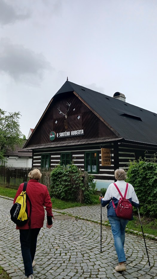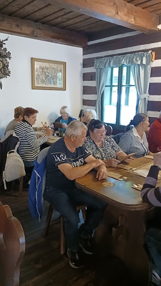 Po téměř dvouhodinové prohlídce nás autobus dovezl do Hlinska, kde jsme měli rezervaci v restauraci U Sv. Huberta, umístěného přímo mezi chaloupkami v Betlému. Hezká stylová restaurace nás přivítala příjemným teplem z krbových kamen a chutným obědem. Čas do prohlídky Betlému každý využil podle svého buď procházkou k řece Chrudimce a náměstí v Hlinsku nebo návštěvou kavárny a cukrárny také přímo v centru Betléma..